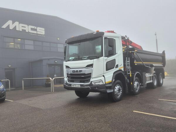 New DAF XDC 450 – 8x4 – Double drive – Auto gearbox – Construction spec chassis – Sun visor – Air con – Epsilon Palfinger tipper grab – 500L clamshell bucket – Abba predator bodies – Sheeting system – Wacker carri...