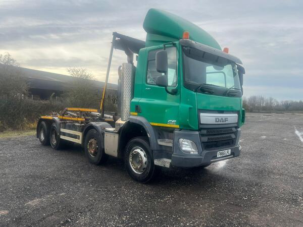 2017 DAF CF 370 FAD 8X4 HOOKLOADER 32T WITH BOUGHTON EQUIPMENT- AUTOMATIC- DAYCAB- AIRCON- 353,364 KMS- DECEMBER 2026 MOT-TACHO DECEMBER 2027- 1 OWNER FROM NEW - JUST ARIVED PLEASE CALL MITCHELL ON 07386 585965