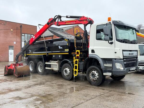 2019 DAF CF 450 Tipper Grab ️ With Elipison M125L ️ * Only 449 Crane Hours * Sold With 1 Years Test Kelberg Hardox Steel Tipping Body - 8x4 Chassis On Rear Springs - Galvanised Sub Chassis - Twin Chass...