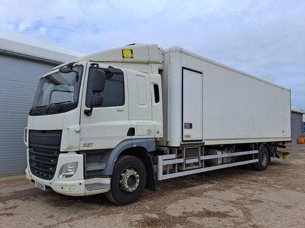2019 DAF LF260 18T 26ft Box. Only 137,386km. Auto. Del 1,500kg column tail-lift. Tyres 95% tread. Day cab. Reversing camera. Central locking. AEBS. Lane assist. Radio. Cruise control. Hill holder. Heated mirrors. ...