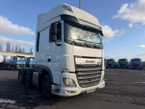 2019 Daf XF480 Super Space 6x2 Tractor Unit • Automatic gearbox • External sun-visor • Euro 6 spec • Twin bunks • Under bunk fridge • Overhead storage compartments • Climate control • Night heater • Sliding fift...