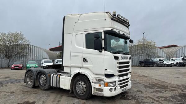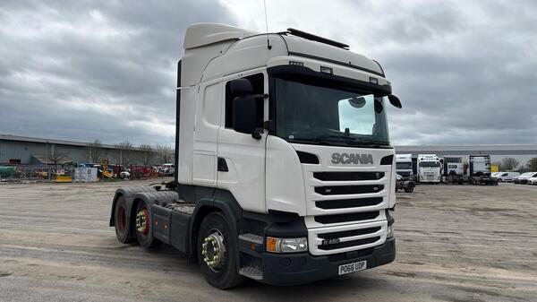 REF TG 3652 REG WN66LVP SCANIA R 450 EURO 6 6X2 DOUBLE SLEEPER CAB FRIDGE MICROWAVE AIR CON ALL ROUND CAMERA SYSTEM MID LIFT AXLE SLIDING FIFTH WHEEL FULL AIR KIT DECEMBER 25 MOT VERY GOOD CONDITION ONE COMPANY OW...