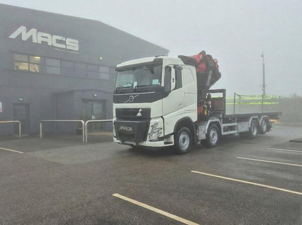 Volvo FH 460 – 8x2 – Rear steer – 9T front axles – I-Shift auto gearbox – Flat top sleeper cab – Sun visor – Fridge under bunk – Top spec inside the cab = Fassi F705R.2.6 – 6 Hydraulic extensions – Remote control ...