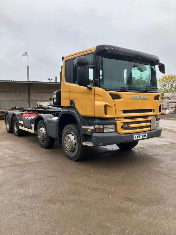 -2007 Scania P380 -8x4 Hook lift -Fitted with Multilift XR21 S equipment -PM on board weigher -Rear Axle bogie blocking -Good condition, owned from new and maintained in house - Ready to work