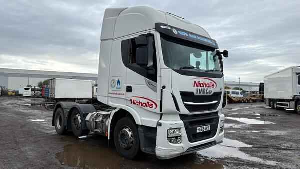 IVECO STRALIS 260S36 2015 (15) EURO 6 COMPLIANT, DOUBLE SLEEPER, 8X2 REAR LIFT & STEER AXLE, 30' 8" FLAT BED C/W SLIDING CANOPY, COIL CARRIER, AUTO GEARBOX, CAMERA, CRUISE CONTROL, AIR CON, SUN ROOF, FRIDGE, STEER...