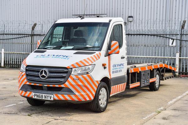 2018 '68' MERCEDES SPRINTER, EURO 6, DIESEL, AUTO, CAMERA SYSTEM - FITTED WITH FIXED ALUMINIUM BEAVERTAIL BODY, ALUMINIUM RAMPS, WINCH, GRP CHASSIS LOCKER, BEACON, WORK LIGHTS AND STROBES