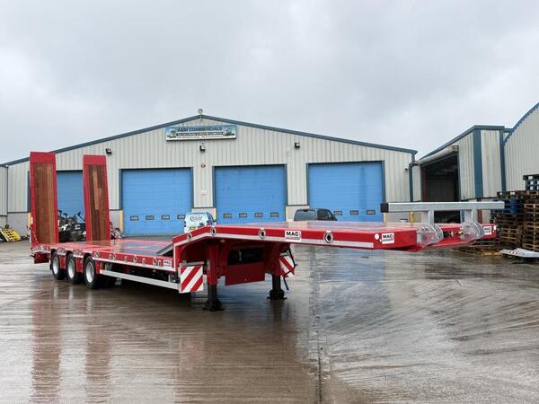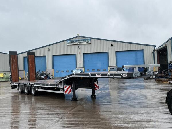 Brand New McCauley MAC-S3-44 Low Loader. Tri-Axle with Air Suspension, SAF Drum Brakes, Flip-toe Ramps, lifting deck, front Lift Axle,rear steer, Outriggers and Led Lighting. Galvanised Headboard With Front T Bar,...