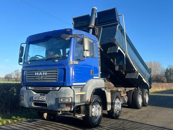 • 2008 MAN TGA 400 8 X 4 Steel Tipper • Gross Vehicle Weight 32000 Kgs • 10.5 Litre 400BHP Turbo Diesel Engine • Manual 8 Speed Gearbox • ABBA Steel Tipping Body • Edbro Hydraulic Tipping Gear • Double Drive Rear ...