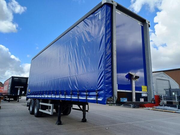 STOCK NUMBER - 344247 2015 Montracon Curtainsider Sliding Posts New ENXL Rated Curtains Tri Axle BPW Drum Brakes Keruing Floor Barn Door Blue MOT Overall height 4.8m