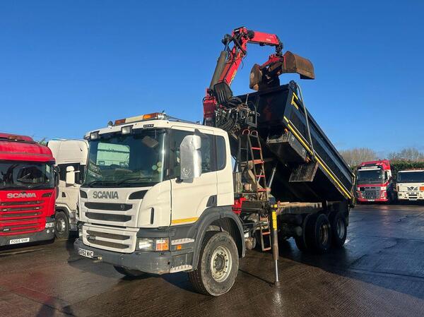 • 2012 Scania P360 6 X 4 Tipper with Grab • Gross Vehicle Weight 26000 Kgs • 12.7 Litre 360 BHP Turbo Diesel Engine • 8 Speed Manual Gearbox • Thompson Steel Tipping Body • Edbro Hydraulic Tipping Gear • Palfinger...
