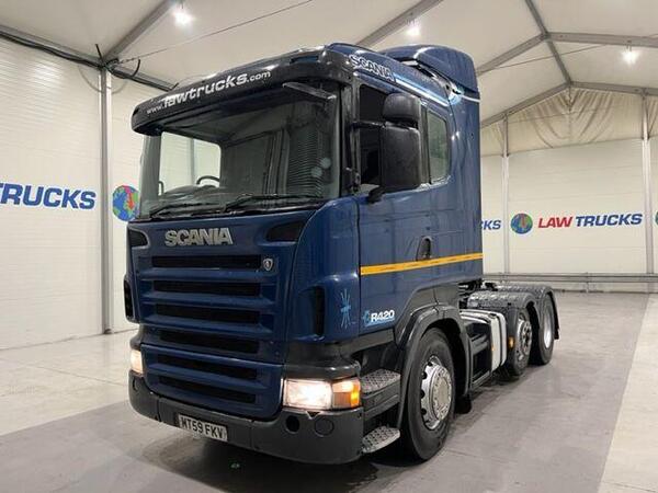 2010 Scania R420 6x2 Midlift Sleeper Cab Tractor Unit. 12 Speed Opticruise Gearbox. Twin Fuel Tanks. Twin Bunk. Radio/Stereo. Full Wind Deflector Kit. Excellent Condition. We can organise shipping to any worldwide...