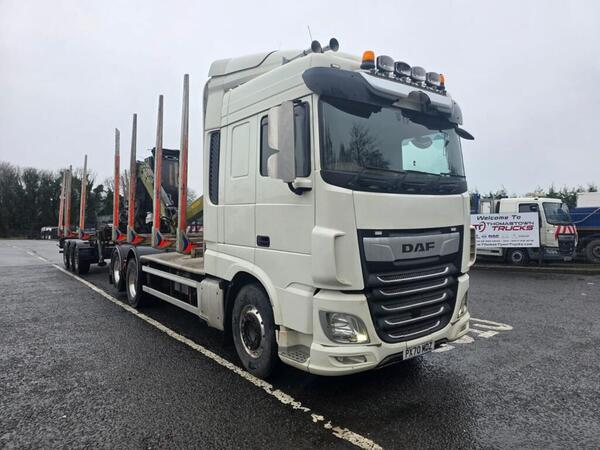 2020 DAF XF 530 Space cab, 6X2 Twin Lift axle, log truck and Dennision Drag Trailer, Rear lift Axle, C/W Log lift F108ST96 Cab Crane, Big Foot Tyre Inflation system, 16 Speed Manual Gearbox, Microwave, Fridge, Dou...