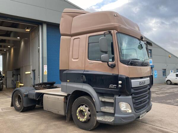 2016/66 DAF CF 4X2 TRACTOR UNIT (410 BHP) AUTOMATIC TRANSMISSION, SLEEPER CAB. DIRECT FROM OUR OWN CONTRACT HIRE FLEET, ONE LOCAL OPERATOR FROM NEW. VERY TIDY LOW MILEAGE EXAMPLE, 352087 MILES, 566625 KMS WITH FUL...
