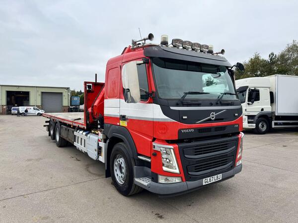 2018 VOLVO FM 340 6X2 FLAT, FITTED WITH FASSI F275 CRANE, 27 TON PER METER CRANE, 4 HYDRAULIC EXTENTIONS, REMOTE CONTROL, WILL LIFT 1,760 KG @ 12.25 METERS, 26 FT FLAT BODY, TWIN WHEEL REAR LIFT, I SHIFT GEARBOX, ...