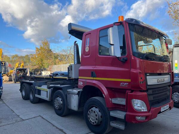 DAF CF 330 2014 (64) EURO 6, 6X2 REAR LIFT AXLE TIPPER GRAB, STEEL BODY, TRIPLE ALLOY DROPSIDES, PALFINGER PK 13001 REMOTE CONTROLLED CRANE, 2 EXTENSIONS, BARN DOORS, HARSH UNDERFLOOR TIPPING GEAR, AIR SUSPENSION...