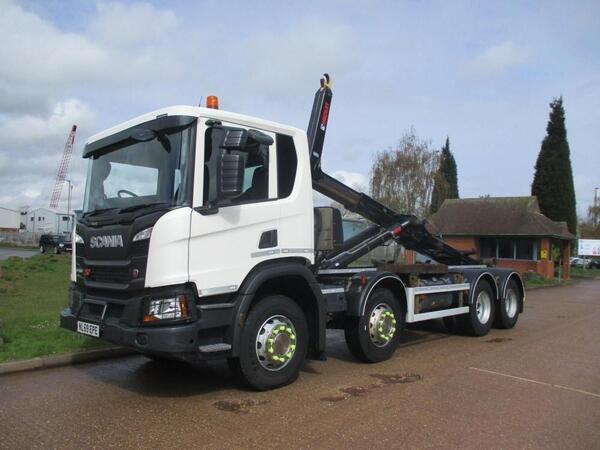 RENAULT C380 2019 EURO 6, 8X4 HOOK LOADER, BOUGHTON EQUIPMENT, KWIKCOVA SHEET, UPRIGHT EXHAUST, LIGHT GUARDS, BEACONS, IN CAB CONTROLS, DAY CAB, WEIGHER, AUTO GEARBOX, EXHAUST BRAKE, CAMERA SYSTEM, AIR CON, SUN RO...