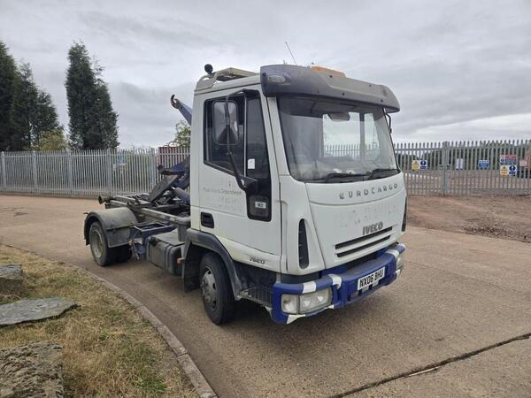 IVECO EUROCARGO 75E17 2006 (06) 7.5 TON HOOK LOADER, MULTILIFT EQUIPMENT, IN CAB CONTROLS, 6 SPEED MANUAL GEARBOX, 3 SEATS. ALL VEHICLES WILL BE CHECKED OVER PRIOR TO COLLECTION AND CAN COME WITH 12 MONTHS TEST I...