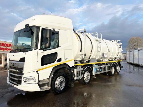 2016 DAF CF 370 8X4 25,000 LITRE FUEL TANKER, EURO 6, DOUBLE DRIVE, SPRING SUSPENSION, TOP AND BOTTOM LOAD, PRINTER AND HOSE REEL, PRODUCT RETURN, ADR SPEC, MANUAL GEARBOX, AIR CON, REVERSING CAMERA, 334,000 KMS.