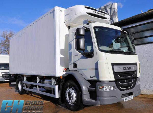 DAF LF 260 – EURO 6 (71) 2022 – 18 ton GVW 21ft Insulated Fridge body ThermoKing T-600 R With Standby Side door 3-way Rear Barn doors Auto gearbox Day cab – 3 seats 153,640 approx Km Date registered 17.02.22 New M...