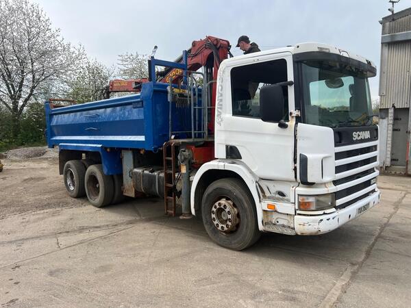 2008 Scania P340 6x4 DayCab Steel Tipper Grab. Palfinger Epsilon E110L Crane. 8 Speed Manual Gearbox. Double Drive Double Diff on Springs Suspension. Radio/Stereo. Excellent Condition We can organise shipping to a...