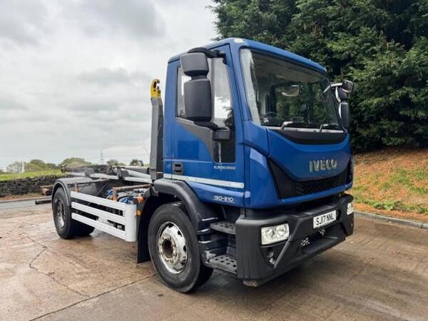 2017 17 IVECO EUROCARGO 150-210 EURO 6 Palfinger T15 hook loader, 15T GVW, steel suspension, tool box's, beacons, reverse camera, Auto, cruise, lane assist, 3 seats, electric windows, ex council, 171,000kms, 09/26...