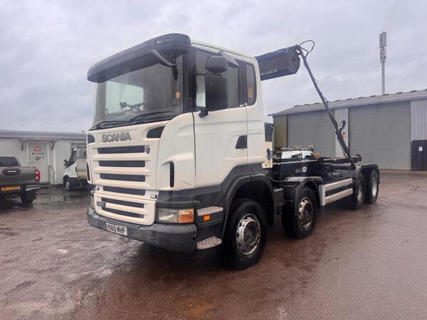 2010 SCANIA R420 8X4 HOOKLOADER, 530,000KMS, MANUAL 3 OVER 3 GEARBOX, BOUGHTON HOOK GEAR, KWIKCOVA EASY SHEET, STEEL SUSPENSION, WORK LIGHTS, REVERSING CAMERA, DIFF LOCKS, SHIPPING AVAILABLE