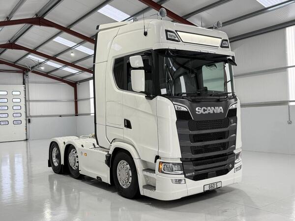 New 2026 Scania 660S V8 Highline. Euro 6, 6X2 Midlift, 2 Pedal Opticruise Gearbox, Right-Hand Drive, Retarder, Sliding Fifth Wheel, Colour-Coded White Chassis, Skylights, Fog Lights, Xenon Headlights, Alcoa Durabr...
