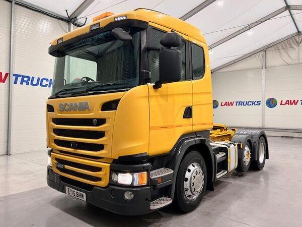 2015 Scania G450 Euro 6 6x2 Sleeper Cab Tractor Unit. 12 Speed Opticruise Gearbox. Single Fuel Tank. Single Bunk. Air Con Unit. Fridge. Radio/Stereo. Excellent Condition. We can organise shipping to any worldwide ...