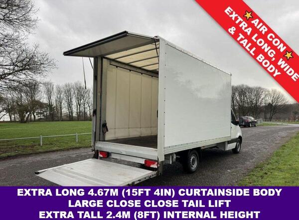 Mercedes-Benz Sprinter 2.0 315Cdi 3.5t. 4.67m (15ft 4in) x 2.4m (8ft) Tall Curtainside Tail Lift, Eu 6, 150Bhp Large Tail Lift, 2.4m Rear Aperture